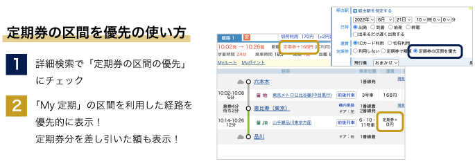 「定期券区間優先」詳しくはこちら ▶︎